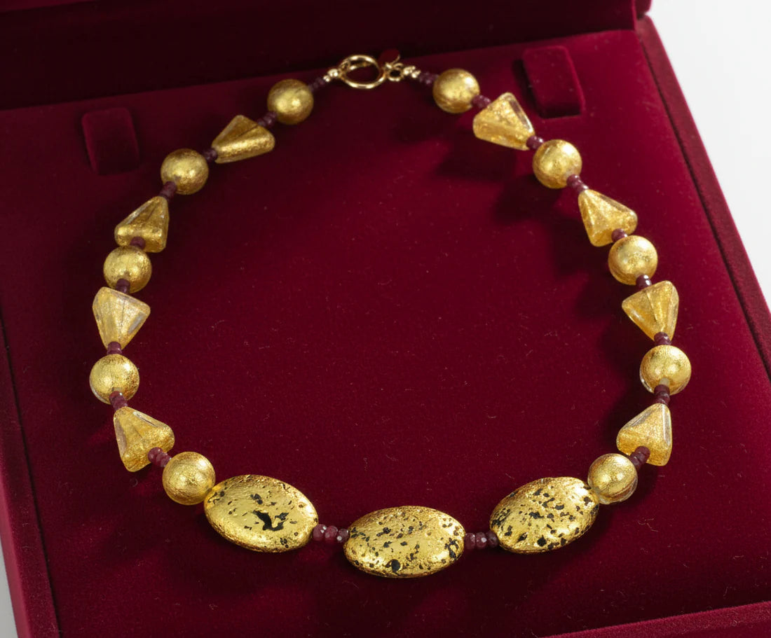 "Ruby and Gustav" Necklace - 23K on Lava Stone Ruby Necklace