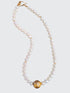 A beautiful and unique necklace! The combination of the 23-Karat gold leaf lava stone, freshwater pearls, and 14-Karat gold-filled toggle clasp creates an elegant and stylish piece. The length of 18 inches is a popular choice for necklaces as it typically falls around the collarbone. For a personal touch, I've added my signature tag. Overall, the I Do necklace is a lovely accessory that would make a statement in any outfit.