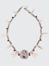 Measuring 17 inches in length, this necklace is a truly unique statement piece, perfect for any special occasion. Each design is a one-of-a-kind wearable art piece, meticulously hand-gilded with 23-Karat gold, white gold, or silver leaf on stone or glass. Paired with precious gems, semi-precious stones, and fine metals like gold and sterling silver, this necklace exudes elegance and sophistication.