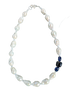 Introducing our exquisite Baroque pearl and sapphire necklace, a stunning blend of elegance and grace. This 21-inch statement piece features lustrous Baroque pearls harmoniously accented by shimmering moonstones. Three sapphires are artfully asymmetrically arranged on the left shoulder, adding a touch of contemporary flair to the classic design.