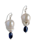 Introducing our elegant Baroque pearl and sapphire earrings, a stunning blend with lustrous Baroque pearls, harmoniously accented by smooth blue sapphires.